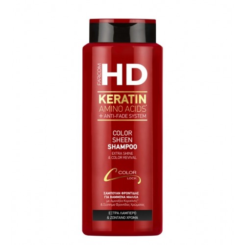 HD Color Sheen shampoon on spetsiaalselt loodud värvitud juustele, et anda neile erakordse elujõu, värvi intensiivsuse, läige ja kaitse. Selle õrn koostis, mis on rikastatud hooldavate ainete, taimset päritolu aminohapete ja ennetavate toimeainetega, aitab hoida juuksevärvi tuhmumast, tagades rikkaliku, elava ja kauakestva värvi. Puhastab õrnalt ning aitab taastada juuste siidise tekstuuri, elastsuse ja läike.